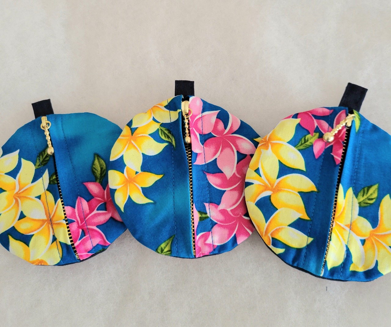 ファスナー縫い付け済キット:まぁるいポーチ ハイビスカス (完成品ではございません)