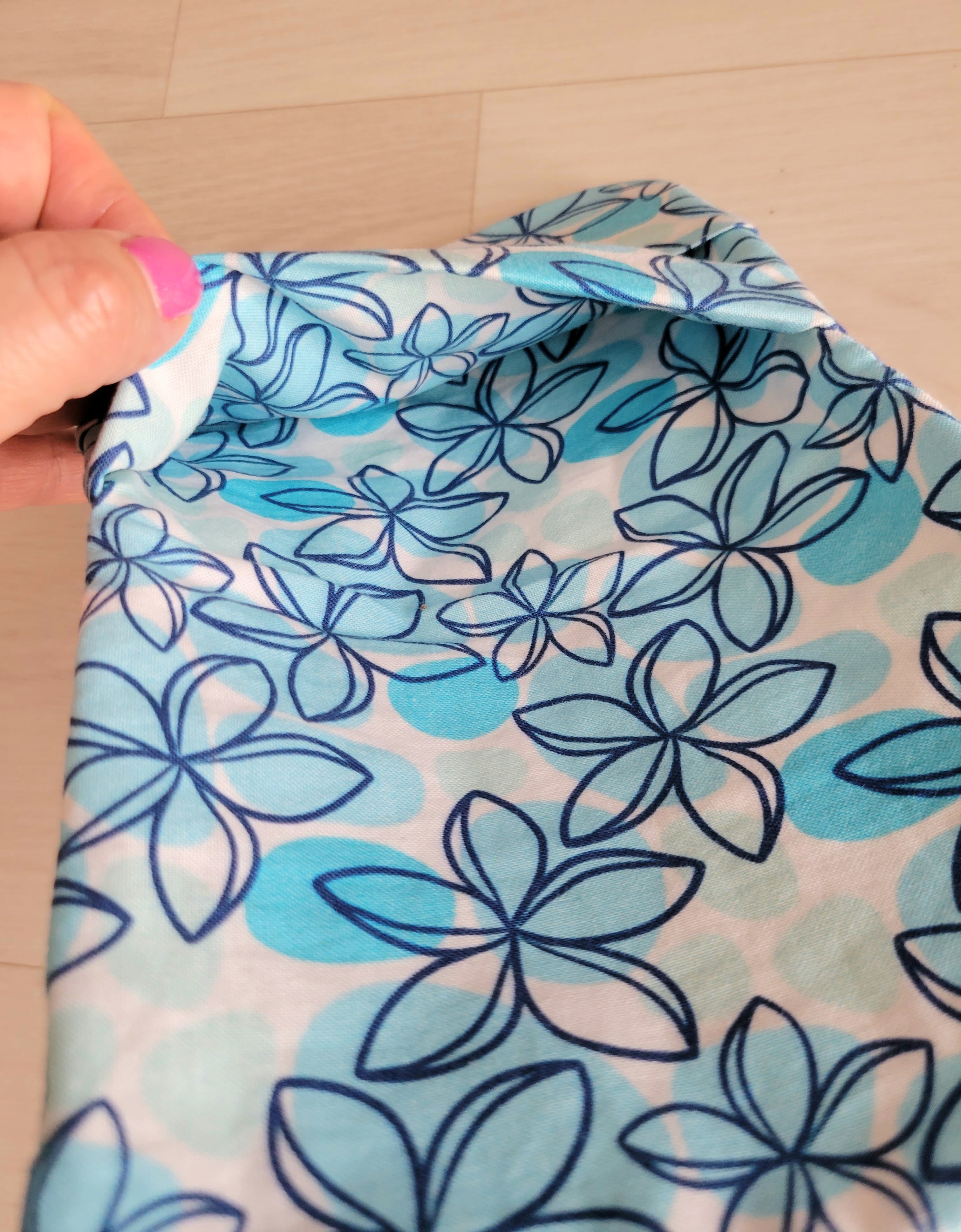 生地:ベース(マリンブルー)、プルメリア(白)